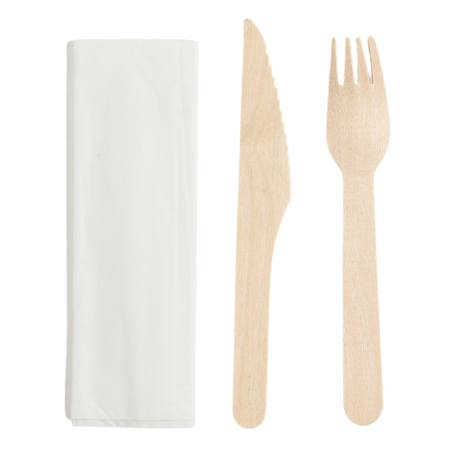 Wooden Cutlery Set 3 Pieces: Knife, Fork, Napkin - Pack of 250