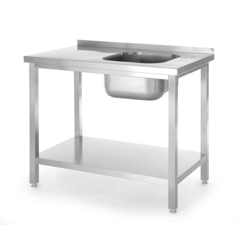 Ideal for professional kitchens, this Sink with Dishwasher Passage is made of stainless steel and reinforced with 18mm of melamine and square stainless steel feet 40x40mm that can be adjusted to a height of 65mm. The 2 left basins measure 250x400x500mm and the sink dimensions are L 1600x W 700x H 850mm.