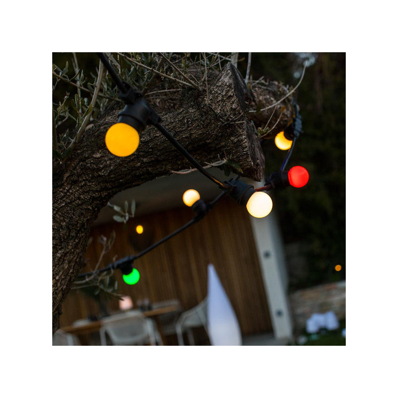 Its warm white LED bulbs illuminate very well (250 Lumens) and bring an elegant warm ambiance to your space. Finally, this light garland is UV resistant and splash-proof.