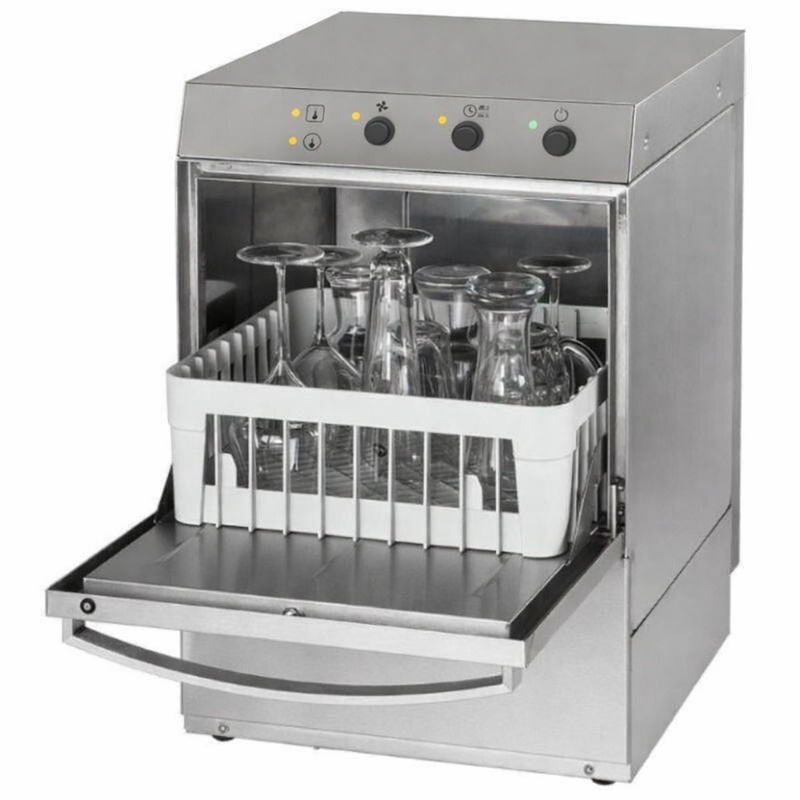 This appliance also includes a very ergonomic handle ensuring an excellent grip, even with gloves. Intuitive, it has an inclined panel for optimal working comfort. This professional glasswasher is made of stainless steel, a material that is both solid, durable, and easy to clean and maintain. Finally, it is equipped with a detergent dispenser ensuring excellent cleaning and product savings.