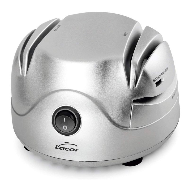Cet aiguiseur à interrupteur marche/arrêt est doté d'une plaque collectrice magnétique pour les particules d'aiguisage et de pieds antidérapants.