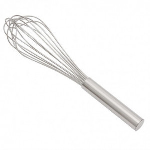 Idealno za profesionalce v gostinstvu, ta Težka metlica dolžine 355 mm je posebej zasnovana za profesionalne kuhinje in je izdelana iz nerjavečega jekla. Sestavljena iz osmih trpežnih kovinskih žic, metlica olajša mešanje in stepanje ter vam prihrani nekaj minut pri pripravi. Zahvaljujoč trdnemu in odpornemu ročaju dobite dodatno oporo med stepanjem, kar vam omogoča udobno pripravo velikih količin sestavin hkrati. Ročaj je tudi zatesnjen, kar preprečuje, da bi tekočina prodirala v ročaj - kjer se pogosto bakterije hrane znajdejo v tradicionalnih metlicah.
