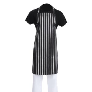 Predpasniki omogočajo osebju, da med strežbo ohranijo svojo obleko čisto. Ta Črno-beli črtasti predpasnik pomaga bolje prikrivati madeže in ohranjati urejen videz. Dolge vrvic omogočajo prilagajanje na katerokoli velikost.