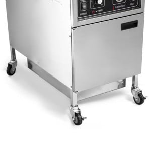 Električni tlačni cvrtnik 24 L ima impresivno moč 13.500 vatov, kar omogoča hitro segrevanje do 200°C. Ta lastnost zagotavlja hitro in enakomerno kuhanje, idealno za storitve z velikim obsegom. Z eno posodo in košaro omogoča poenostavljeno upravljanje kuhanja, hkrati pa zagotavlja izjemne rezultate.